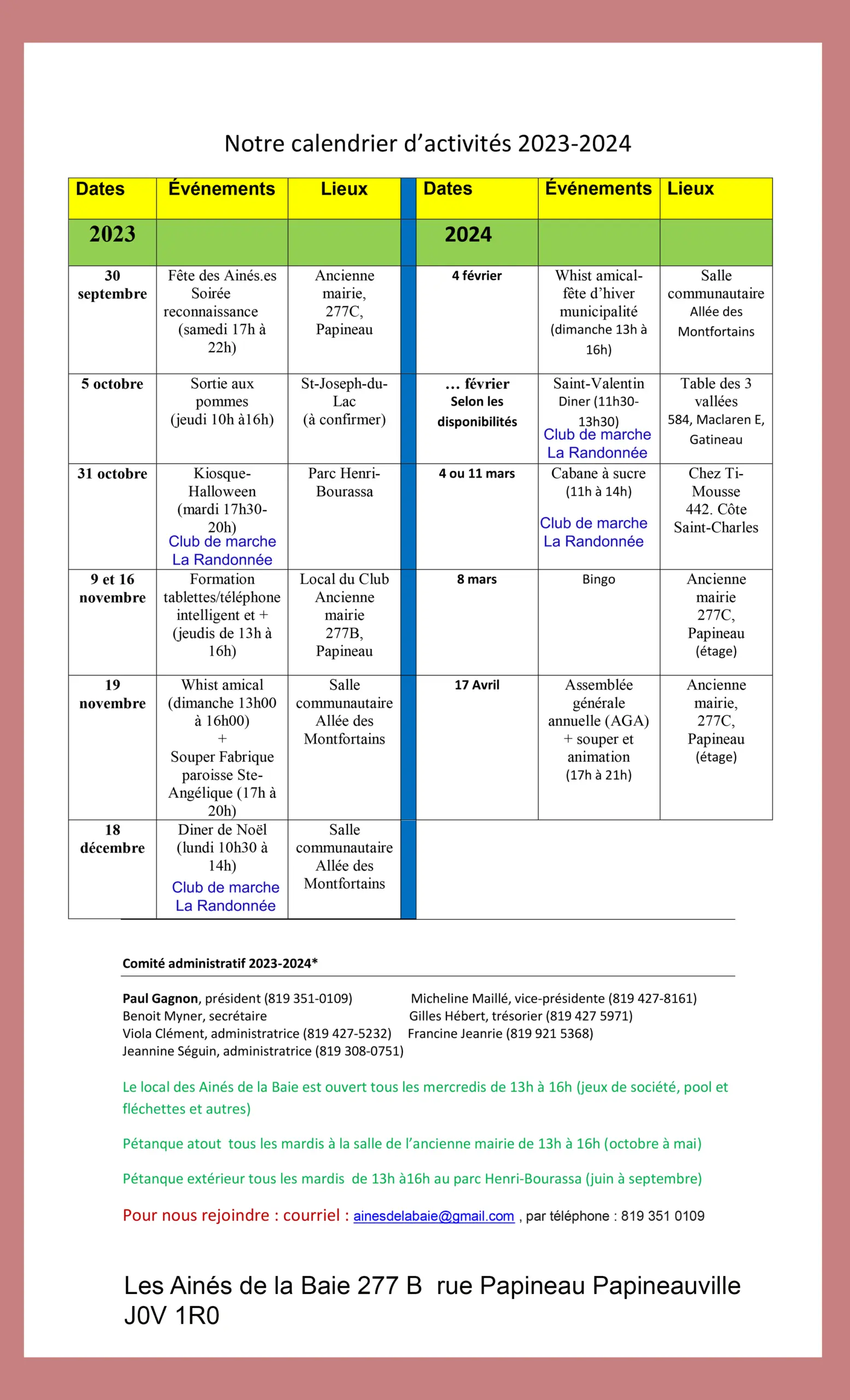 Corporation des loisirs de Papineauville/ Sainte-Angélique
